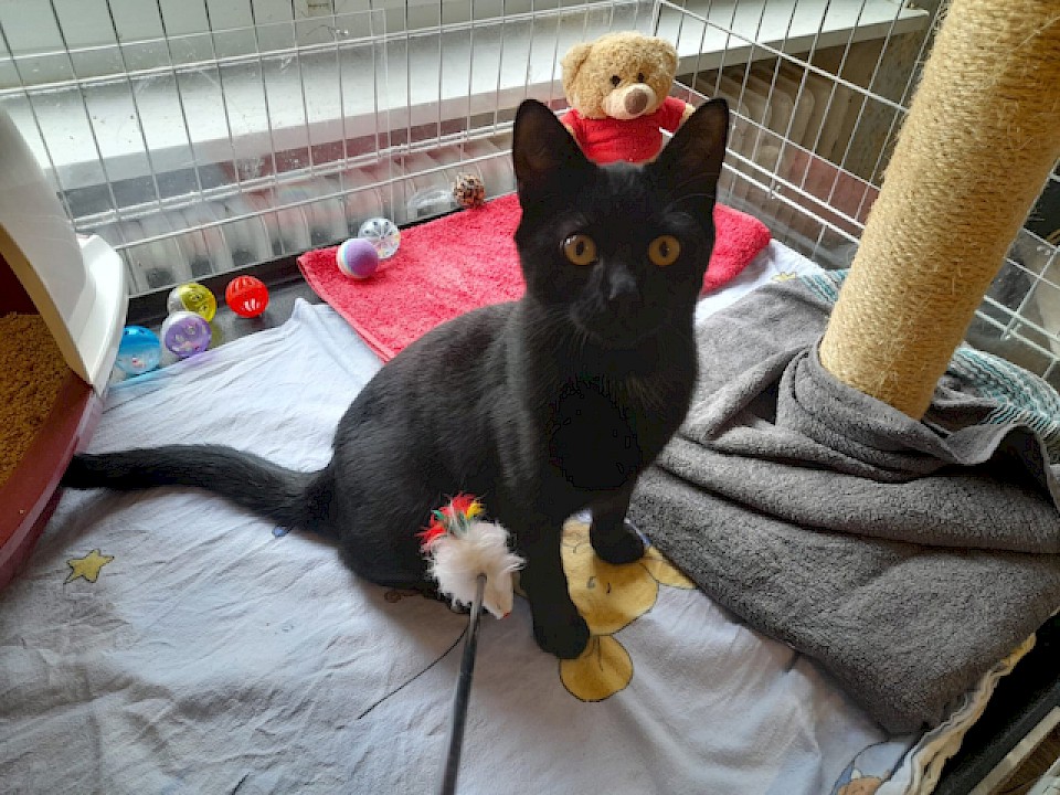 Ich bin ein aufgewecktes Katerchen, das gerne tobt und spielt.